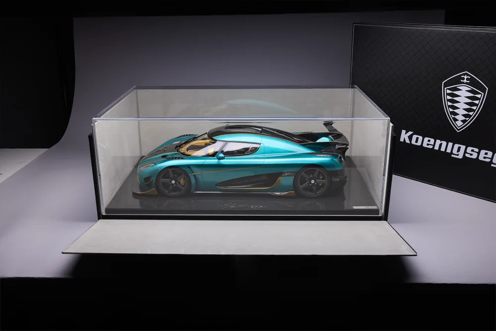 Your model is delivered in a quality leather covered presentation box complete with the Koenigsegg logo and contrasting feature stitching.
